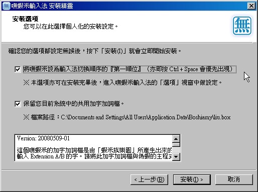 安裝的時候就可以選擇將嘸蝦米設為「第一順位」