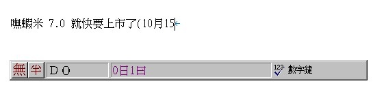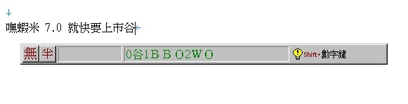 要如何切換中文或英文輸入,標準方法是用 Ctrl-Space,不過現在可以選擇用 CapsLock 或是 Shift 了。我相信一定會有人接著問「那能不能選擇用 左Shift 或是 右Shift ?」嘸蝦米 7.0 沒有提供到這麼細的選項,至於未來就不知道了。 - 使用浮動組字視窗